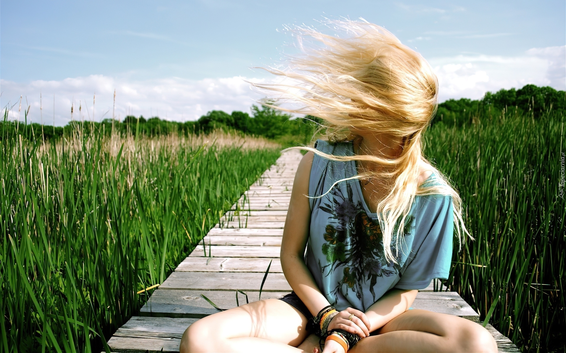 Edytor tapety: Dziewczyna, Blondynka, Rozwiane, Włosy