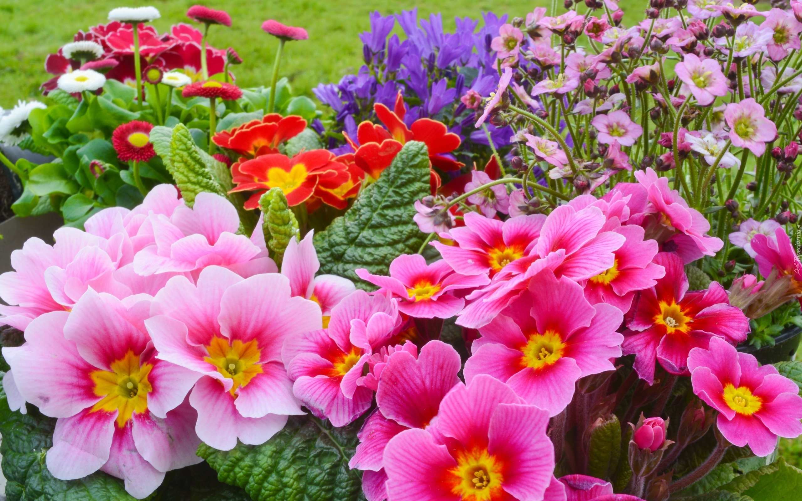 Edytor tapety: Kwietnik, Kolorowe, Kwiaty, Park, Pierwiosnek