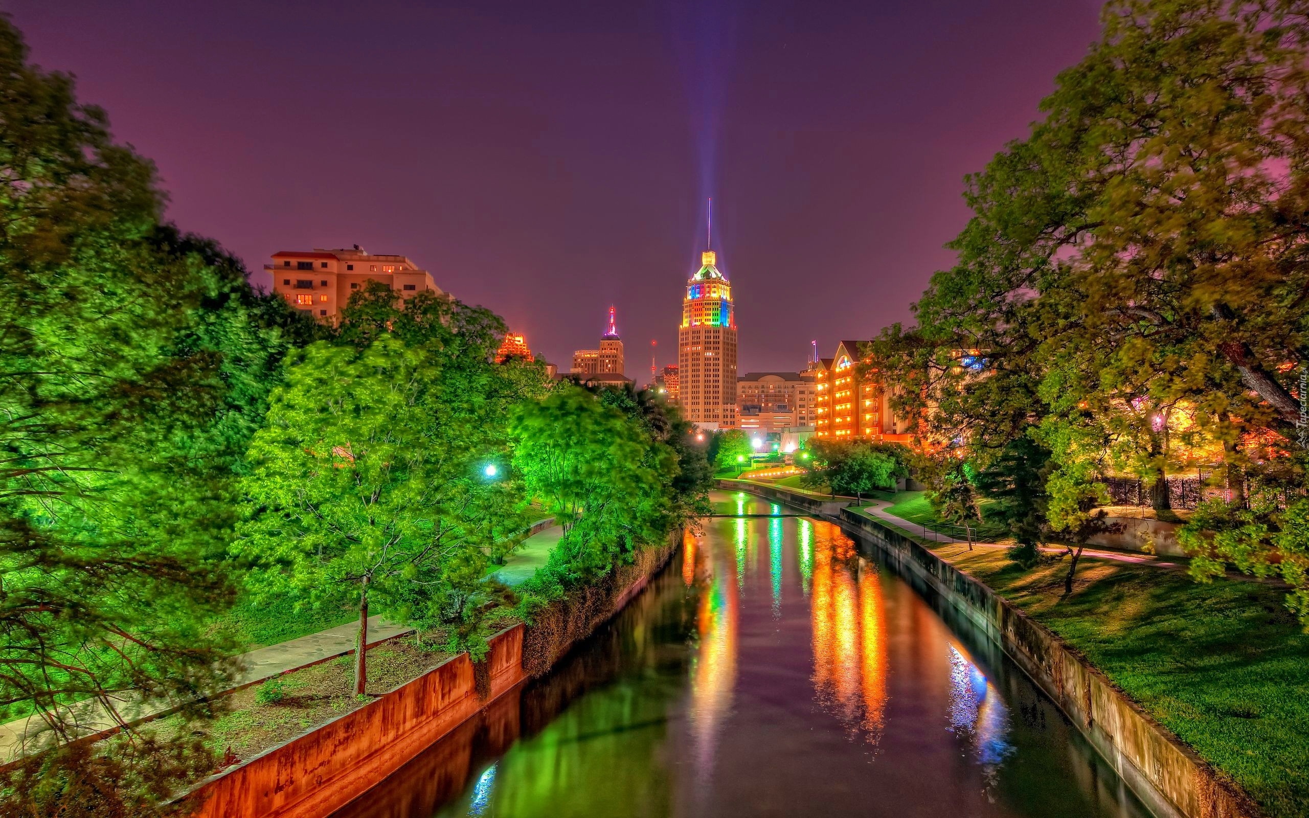 Edytor tapety: Domy, Rzeka, Park