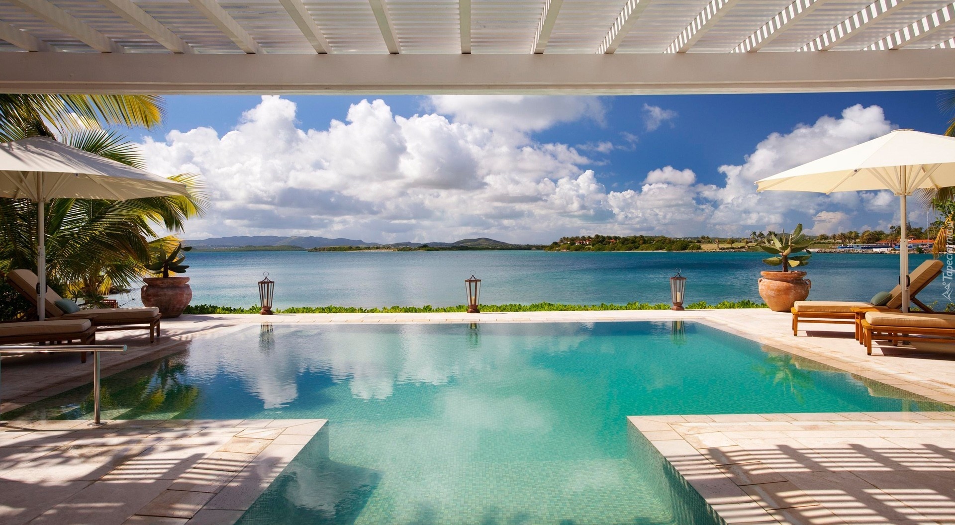 Edytor tapety: Morze, Basen, Parasole, Wakacje
