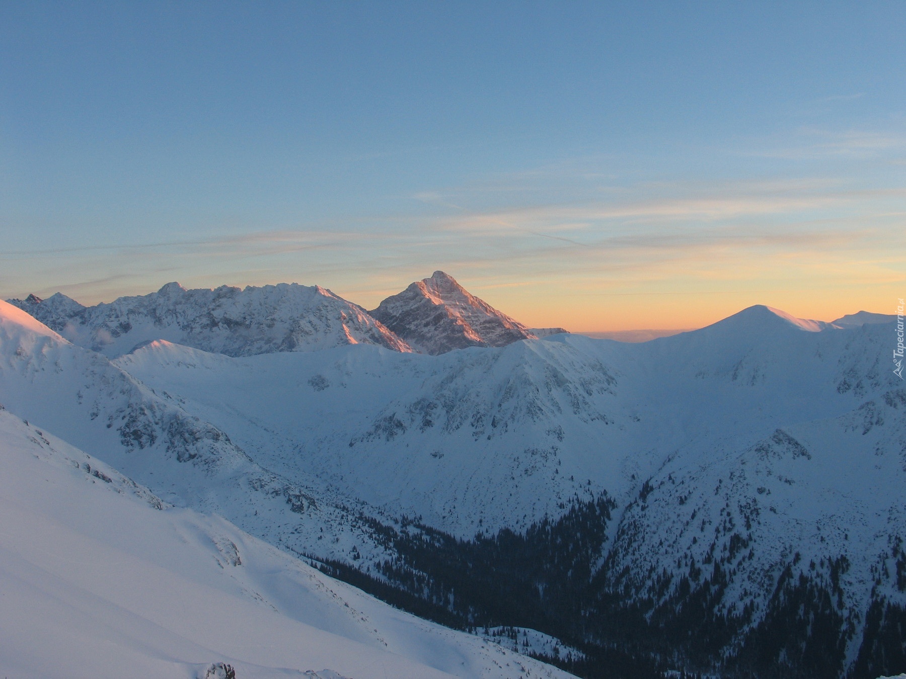 Edytor tapety: Góry, Zima, Zachód Słońca
