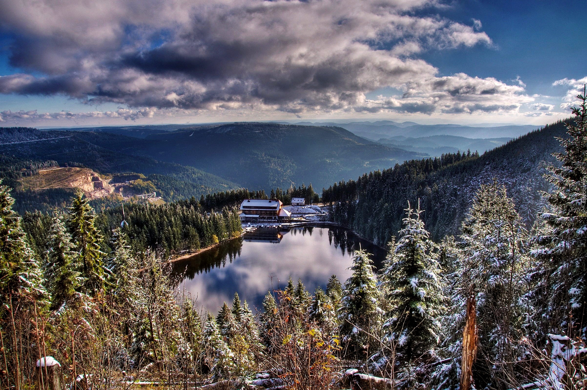 Edytor tapety: Chmury, Góry, Jezioro, Lasy