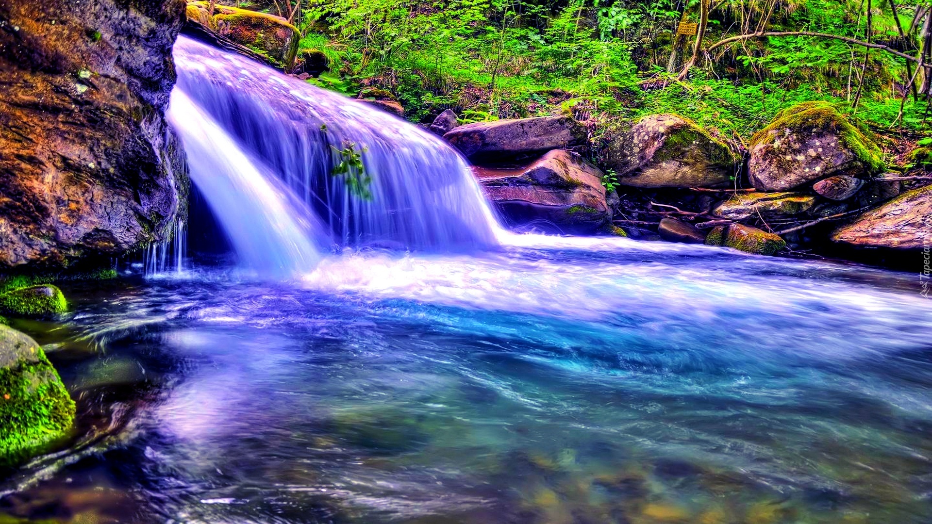 Edytor tapety: Wodospad, Kamienie, Las