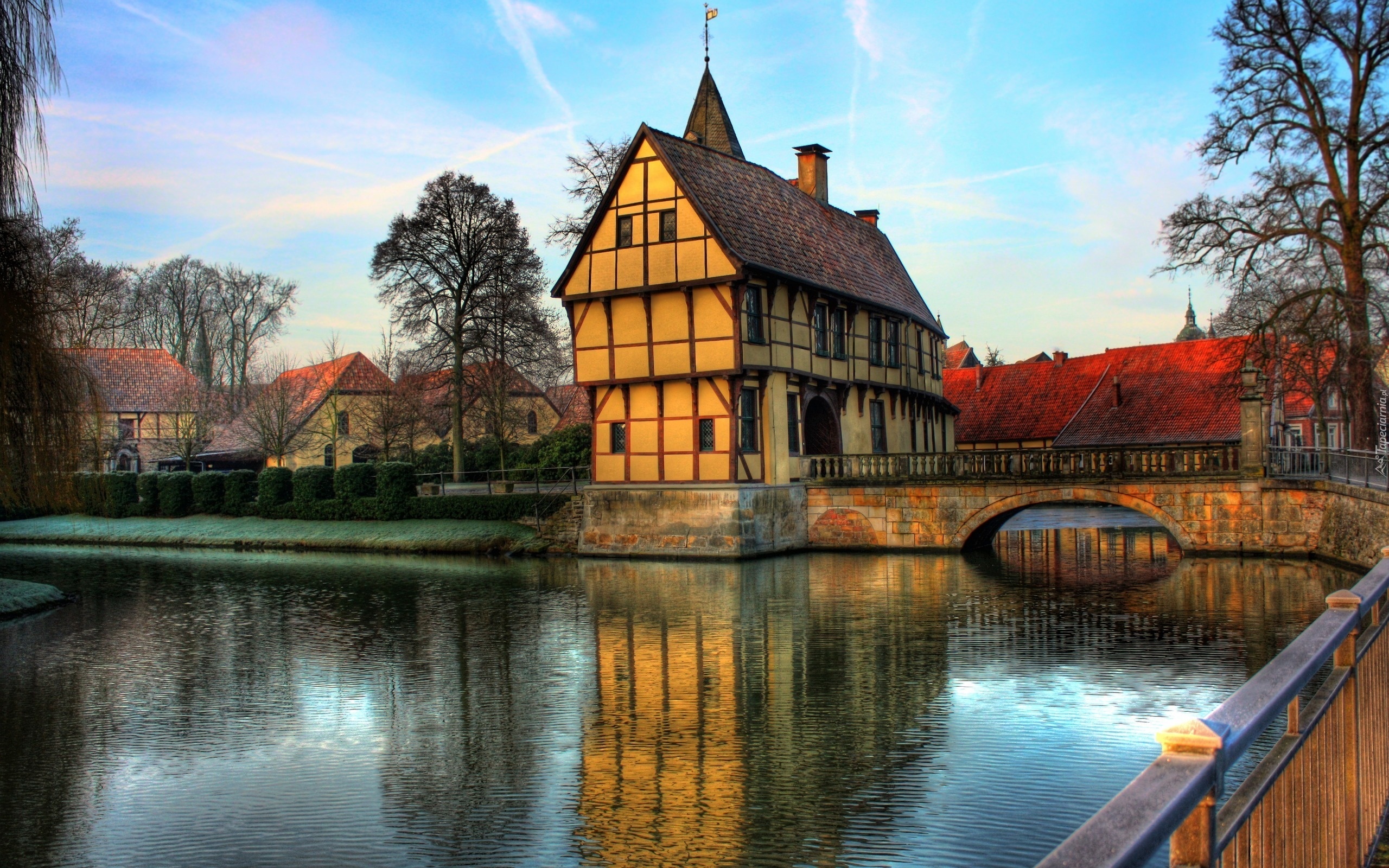Edytor tapety: Domy, Most, Rzeka