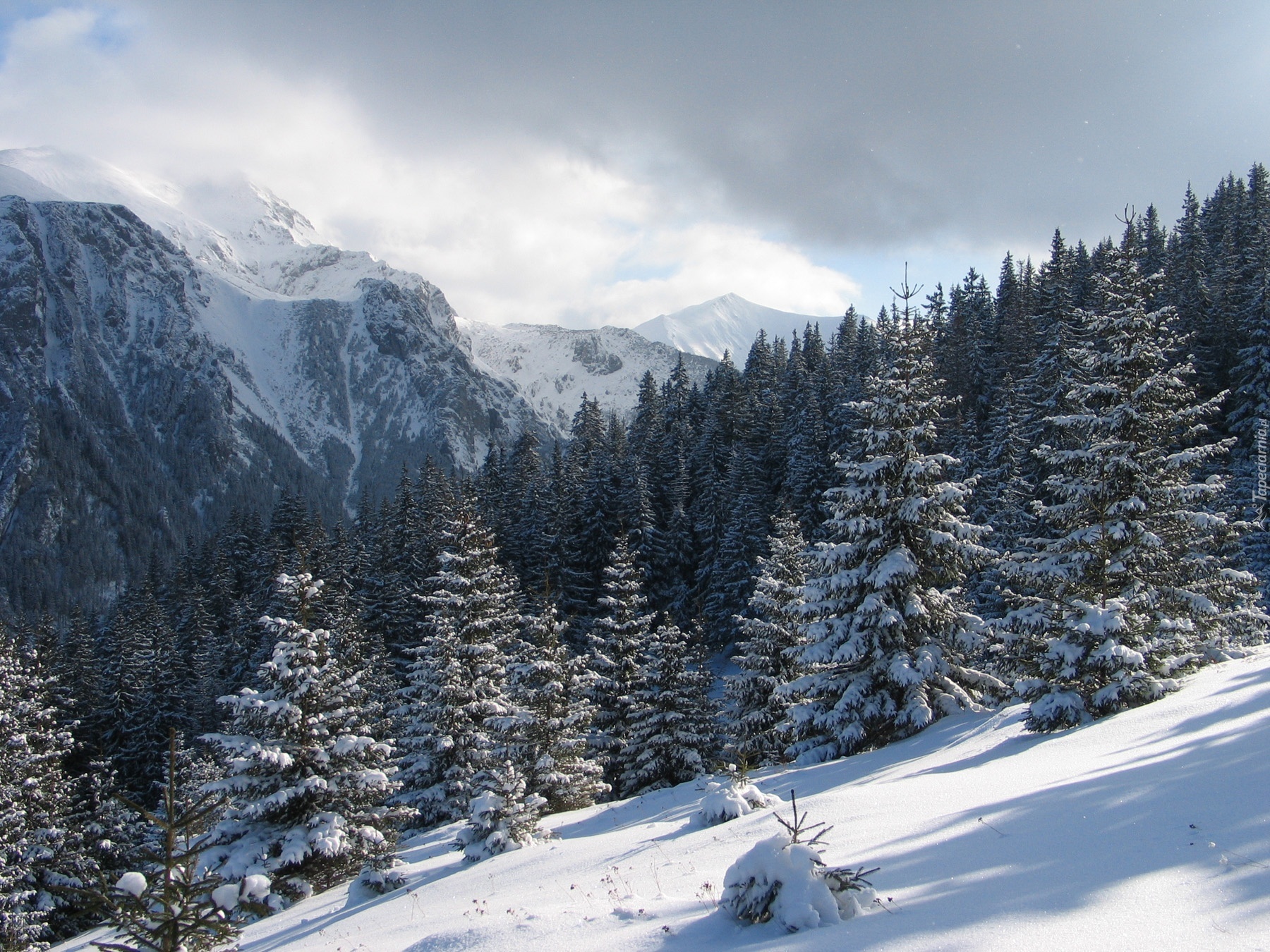 Edytor tapety: Śnieg, Góry, Lasy