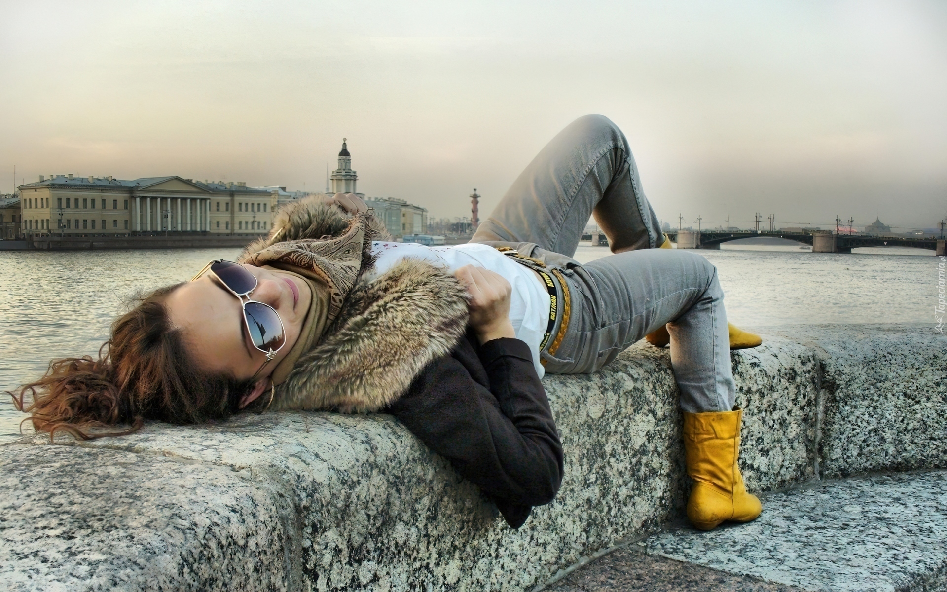 Edytor tapety: Dziewczyna, Ubranie, Okulary, Murek