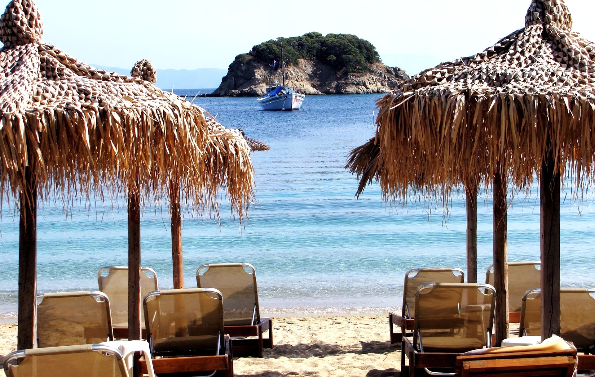 Edytor tapety: Morze, Plaża, Leżaki, Parasole, Wakacje