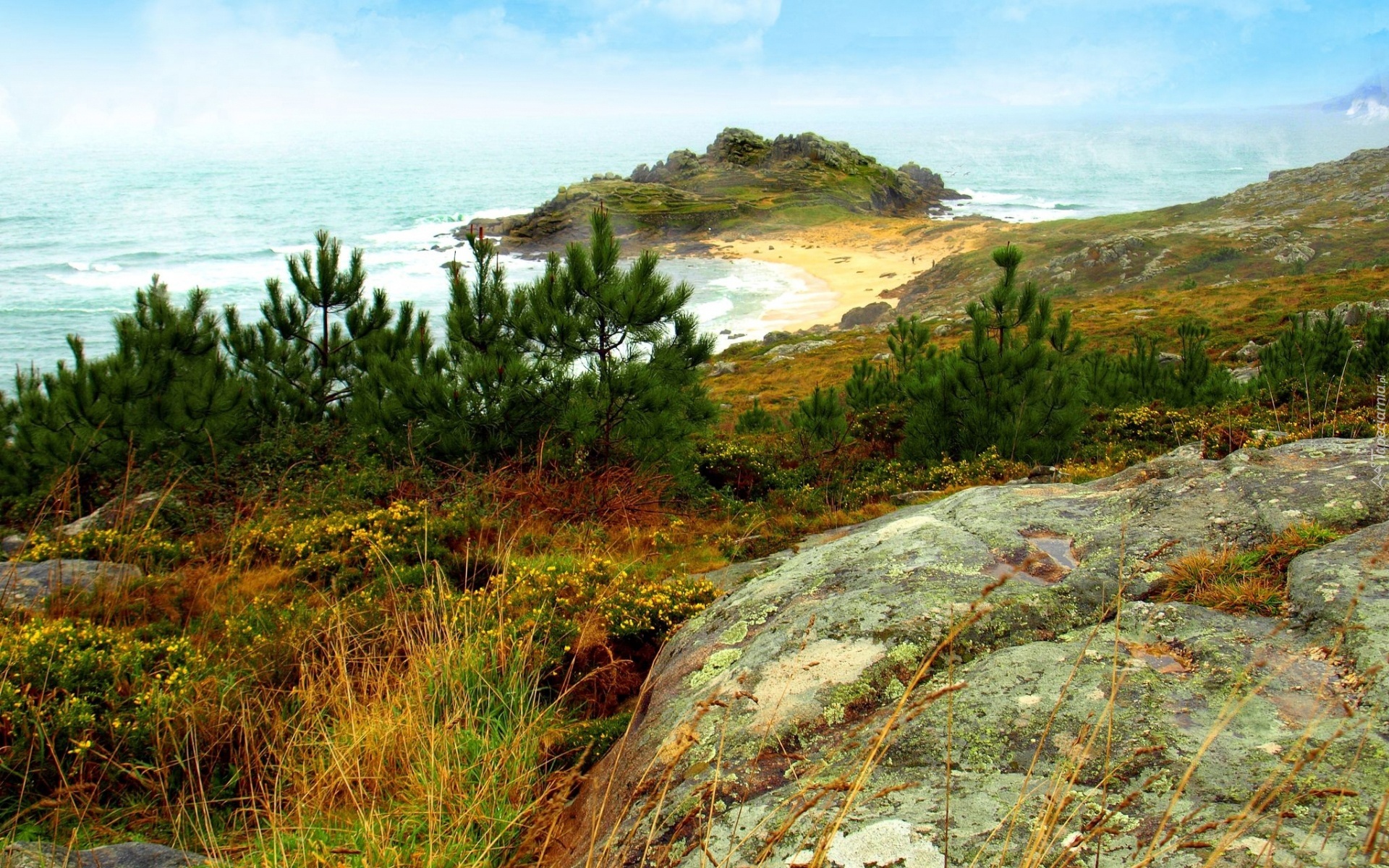 Edytor tapety: Morze, Plaża, Skała, Drzewa