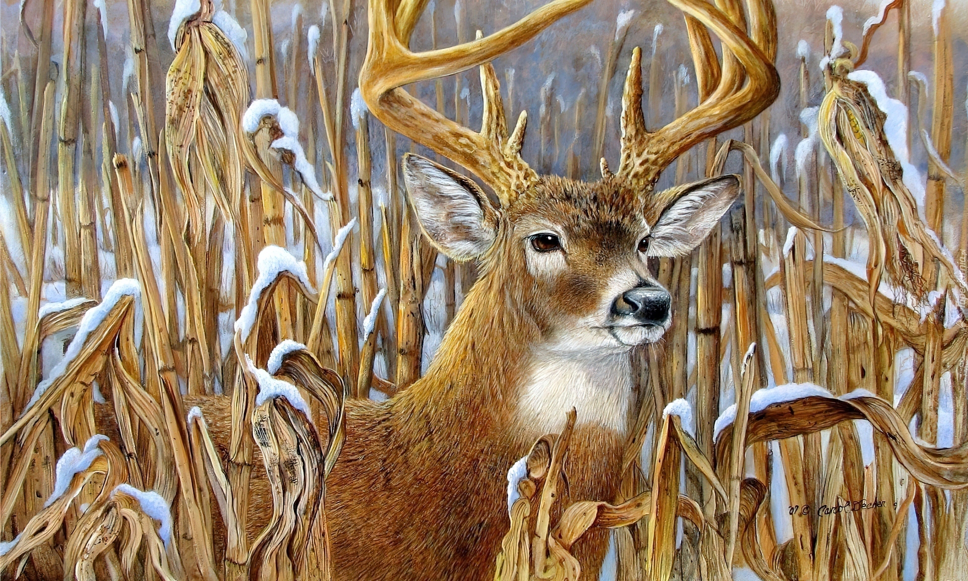 Edytor tapety: Jeleń, Uschłe, Trawy, Śnieg