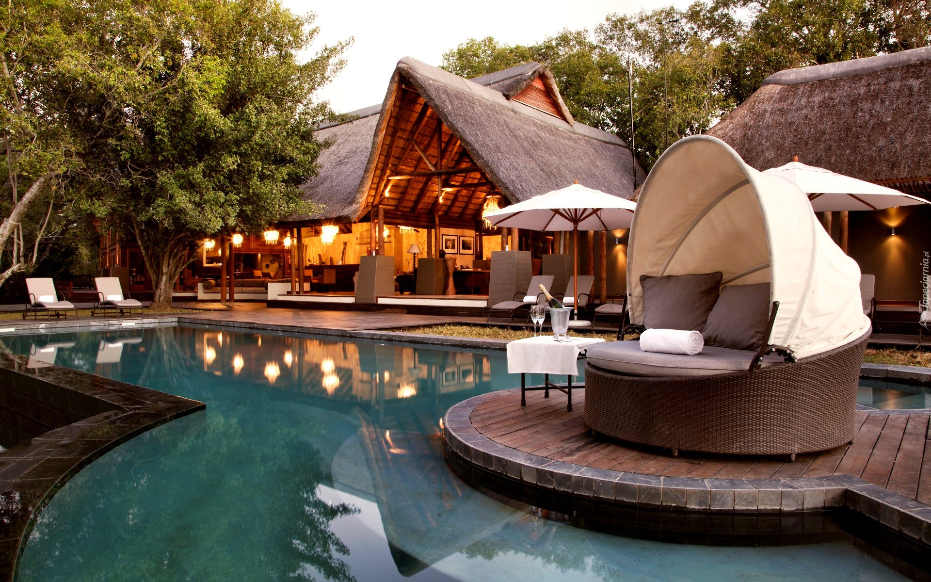 Edytor tapety: Hotel, Basen, Leżaki, Kurort, Wakacje