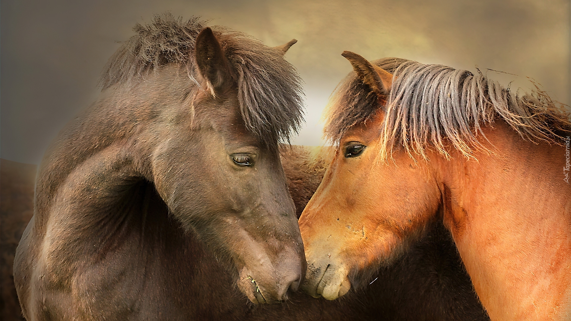 Edytor tapety: Dwa, Konie, Przyjażń