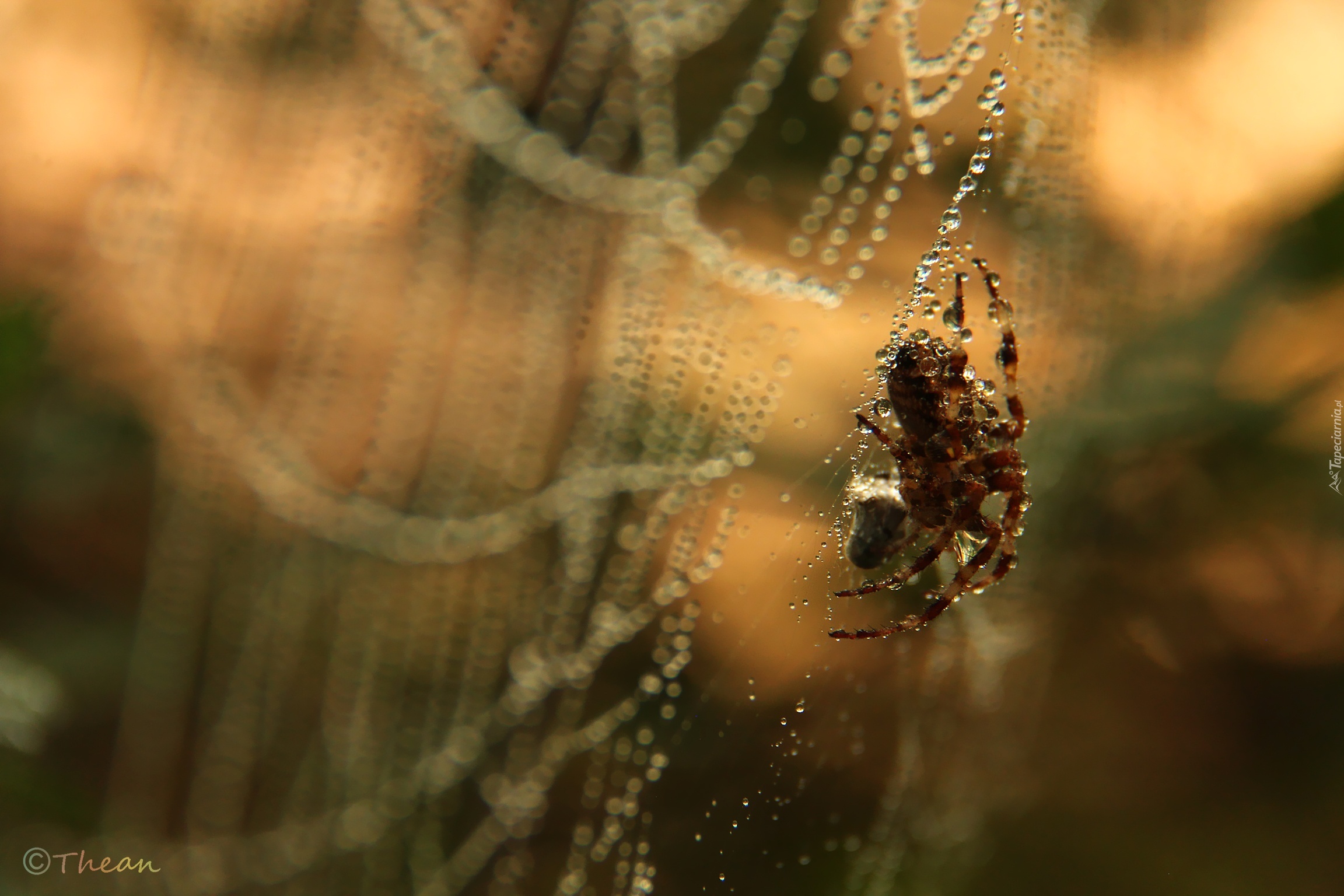 Edytor tapety: Pająk, Sieć, Pajęczyna, Kropelki