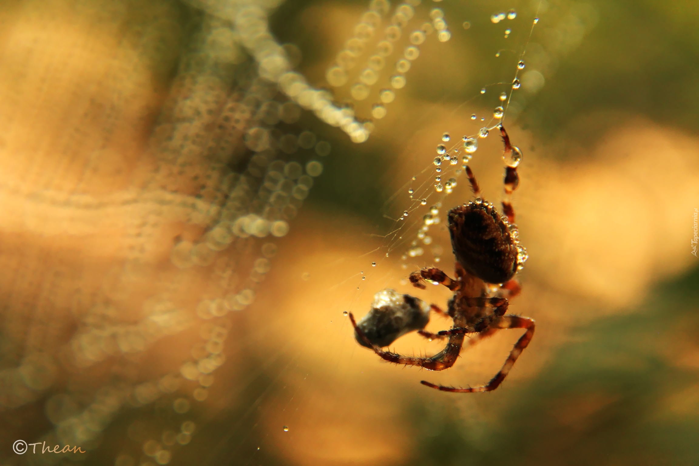 Edytor tapety: Pająk, Sieć, Pajęczyna, Kropelki, Zdobycz