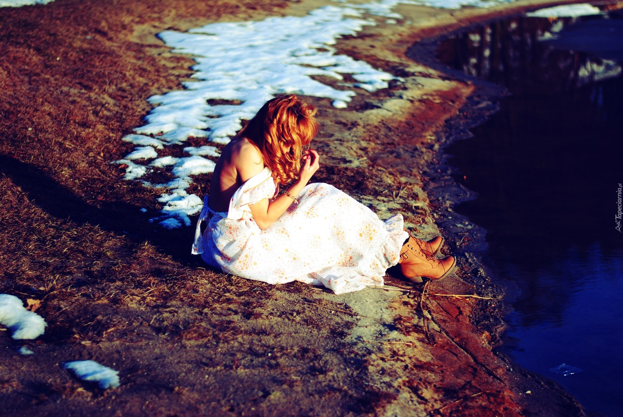 Edytor tapety: Kobieta, Kręcone, Włosy, Sukienka
