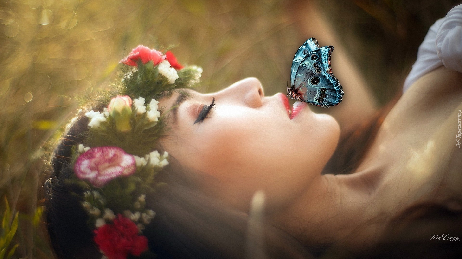 Edytor tapety: Kobieta, Wianek, Motyl