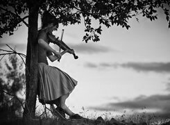 Edytor tapety: Lindsey Stirling, Skrzypce, Drzewo