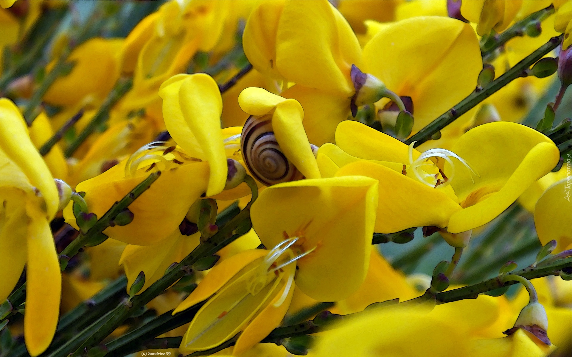 Edytor tapety: Żółte, Kwiatki, Ślimak