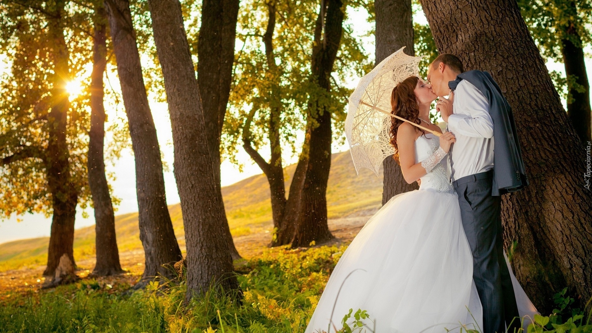 Edytor tapety: Para, Nowożeńców, Las, Promienie, Słońca, Jesień