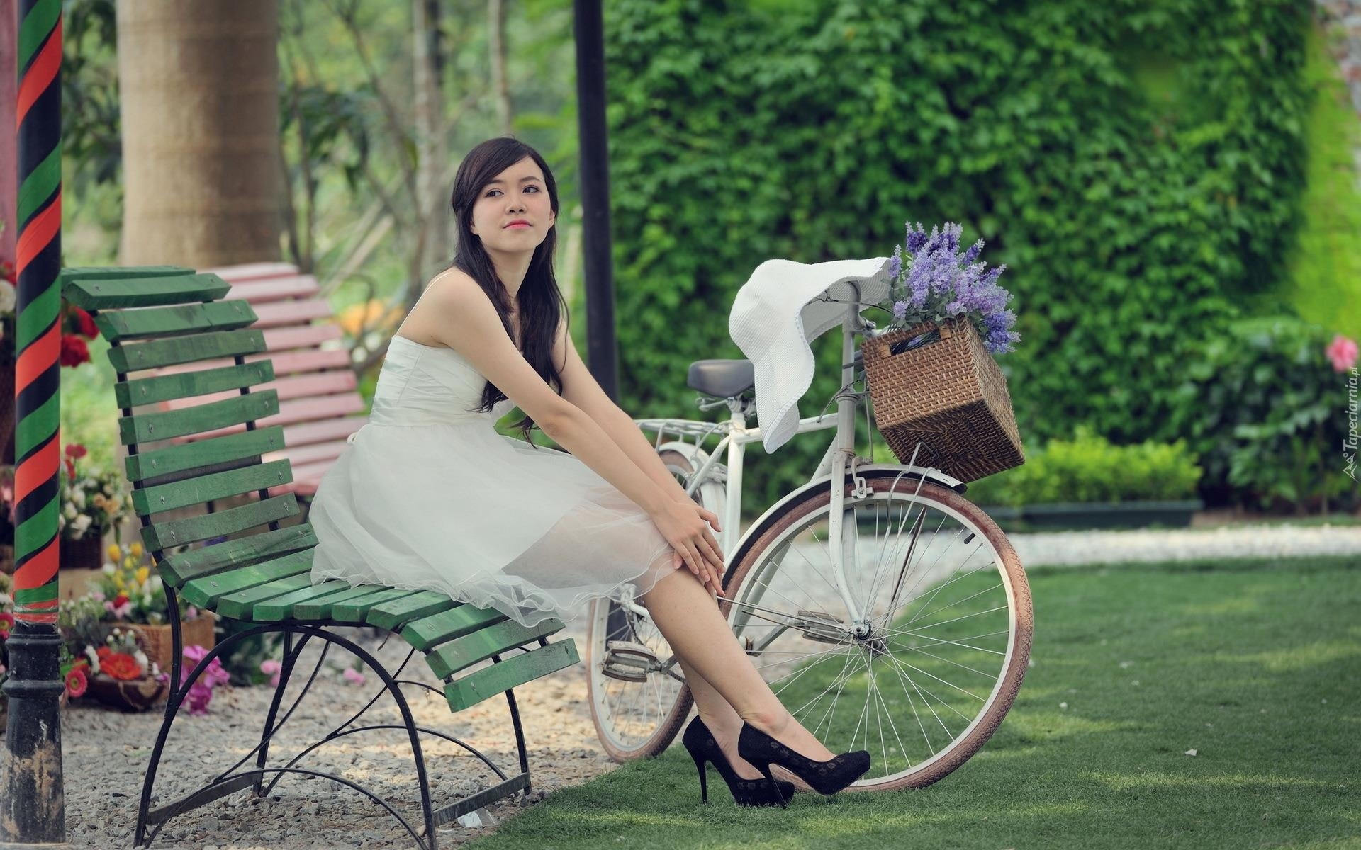Edytor tapety: Kobieta, Park, Rower, Kwiaty