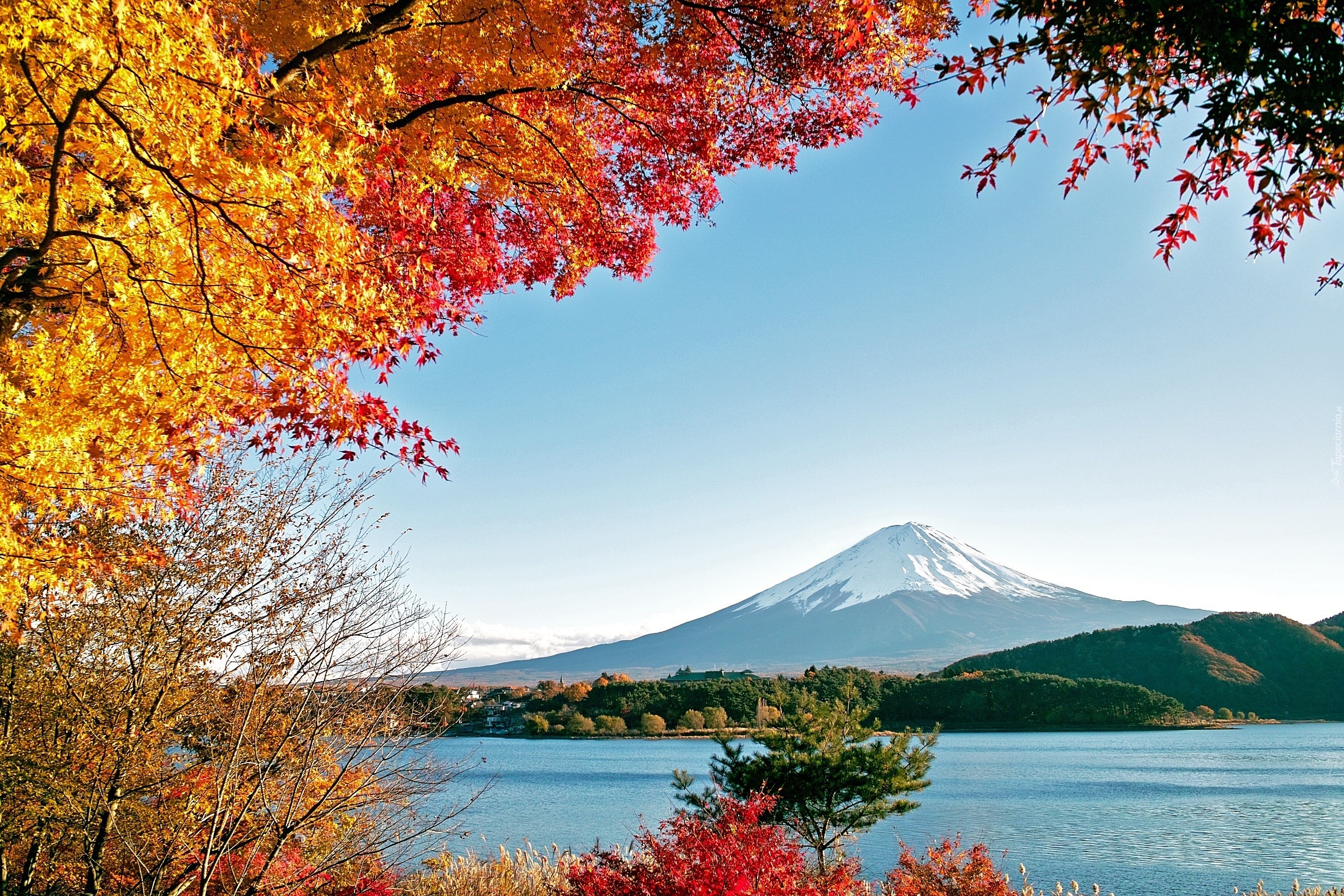 Edytor tapety: Góry, Jezioro, Drzewa, Jesień