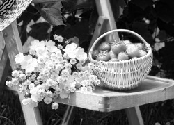 Edytor tapety: Krzesło, Kwiaty, Koszyk, Truskawek
