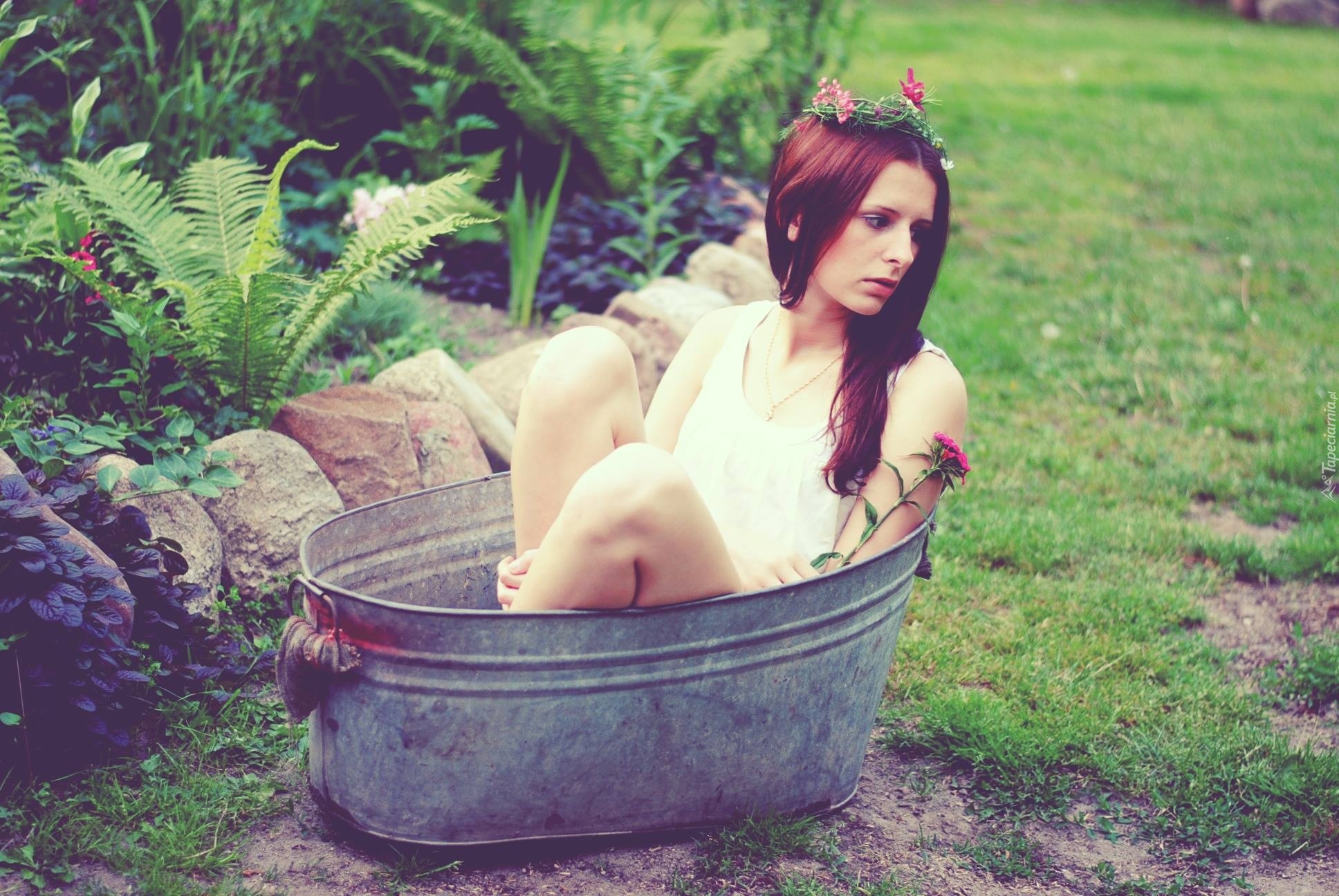 Edytor tapety: Kobieta, Wianek, Miska