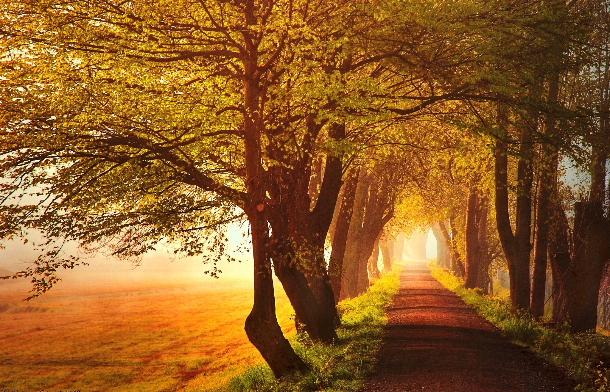 Edytor tapety: Droga, Drzewa, Pola, Przebijające, Światło, Jesień