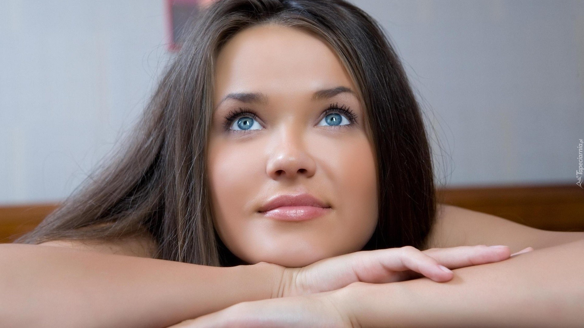 Edytor tapety: Brunetka, Uśmiech, Niebieskie, Oczy