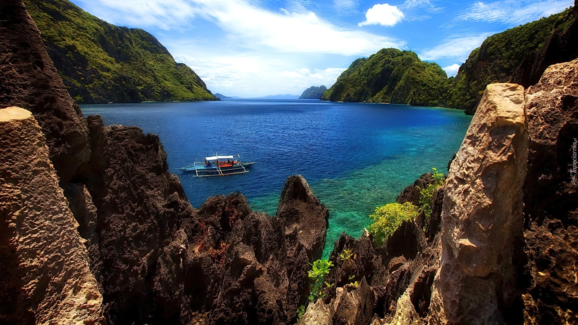 Edytor tapety: Skały, Morze, Wybrzeże, Łódz