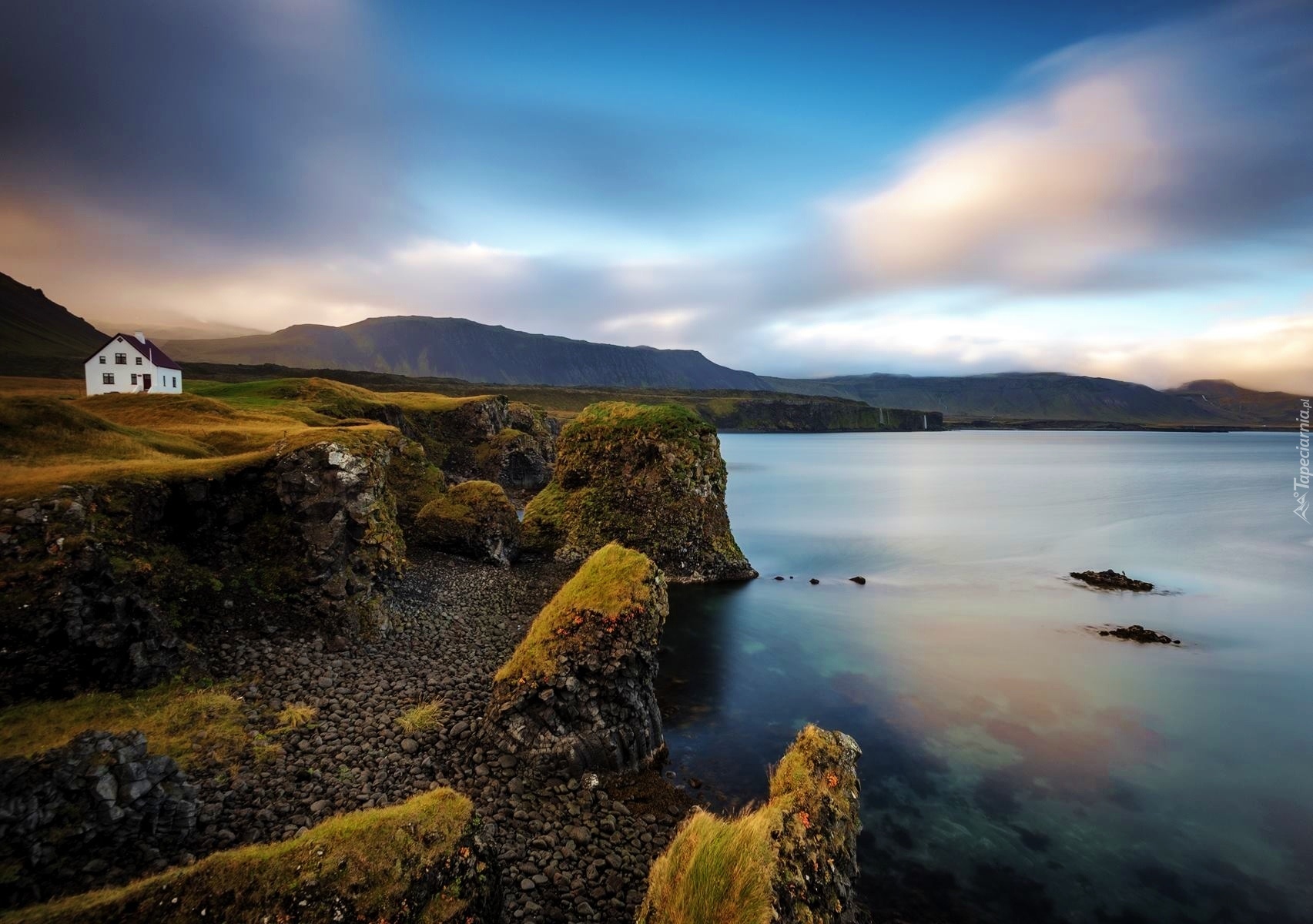 Edytor tapety: Skały, Morze, Niebo, Domek
