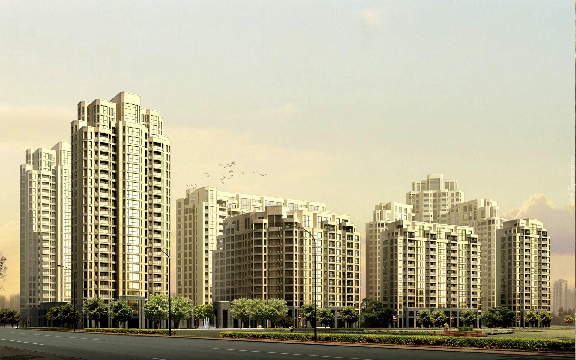 Edytor tapety: Drapacze, Chmur, Ulica, Drzewa