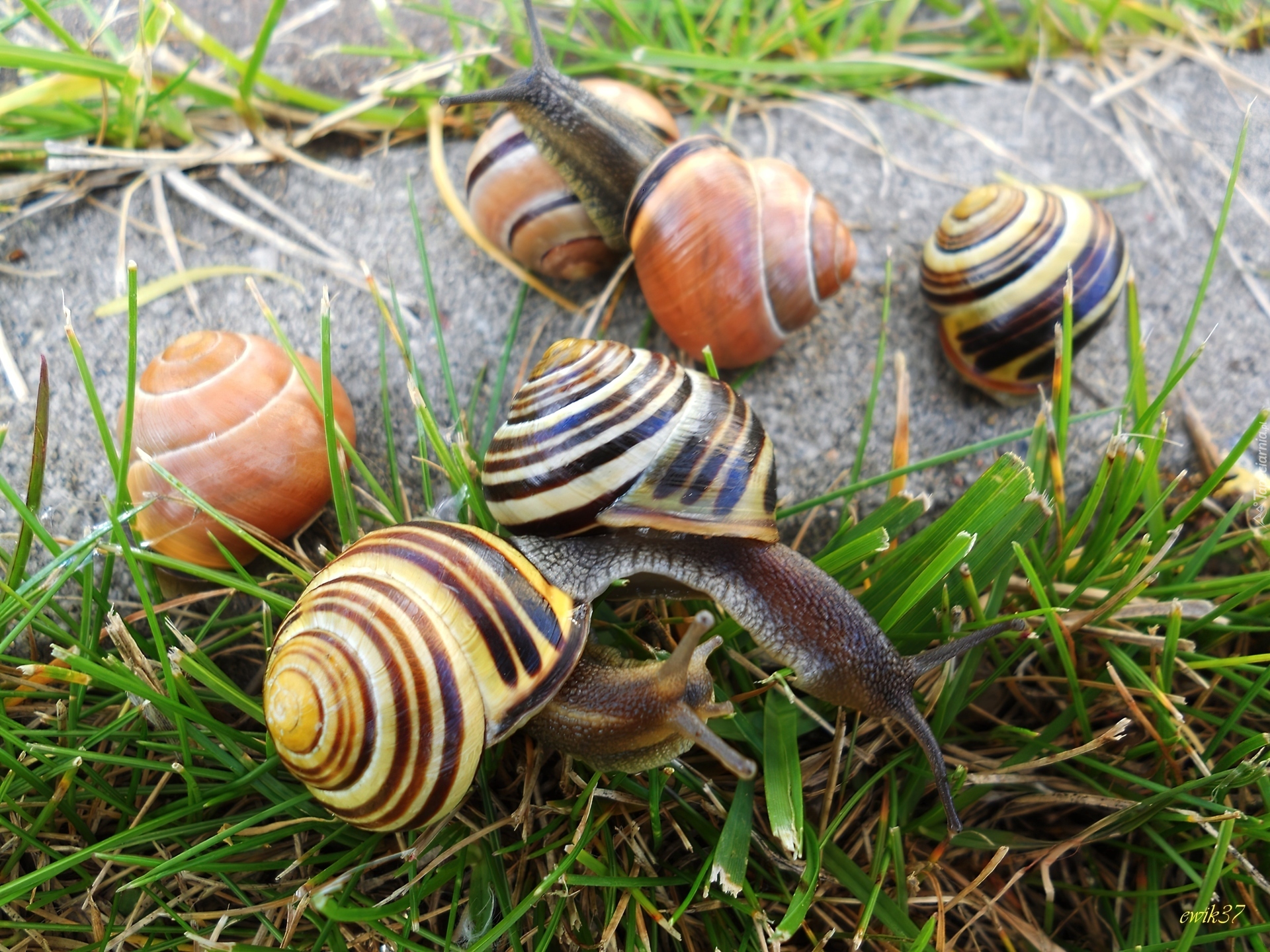 Edytor tapety: Sześć, Ślimaków, Trawa, Chodnik