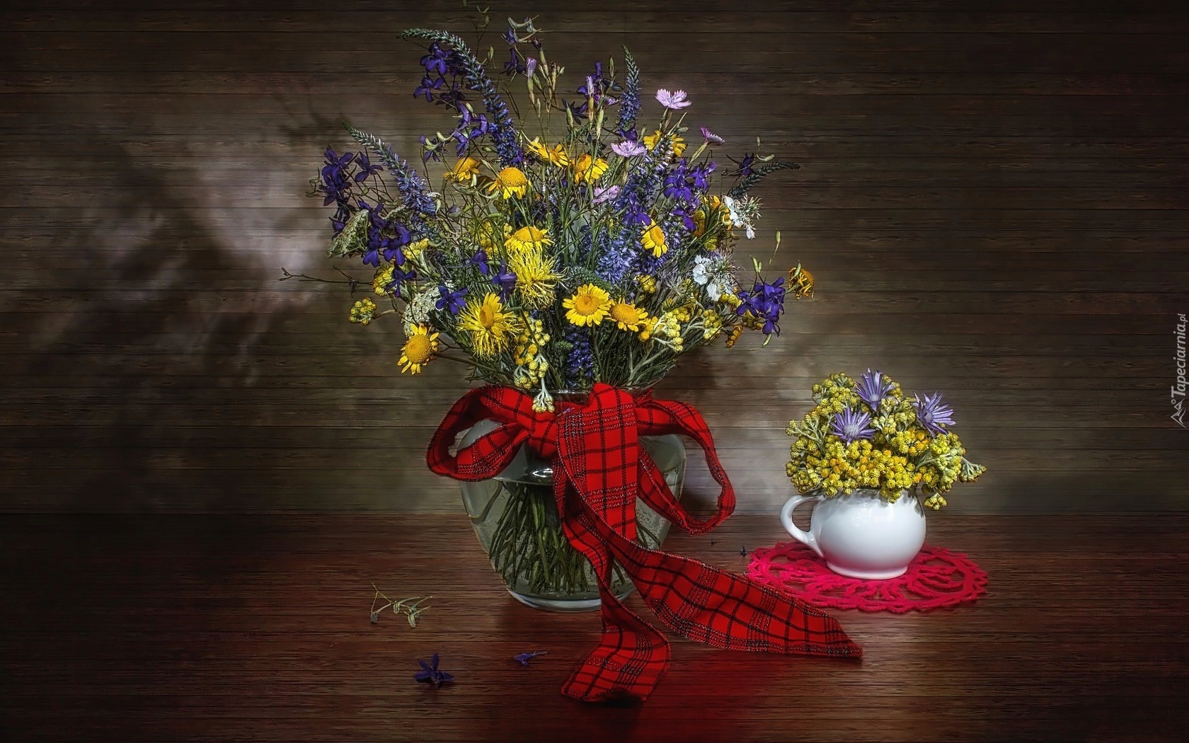 Edytor tapety: Bukiety, Kwiatów, Polnych, Kompozycja, Kraciasta, Wstążka