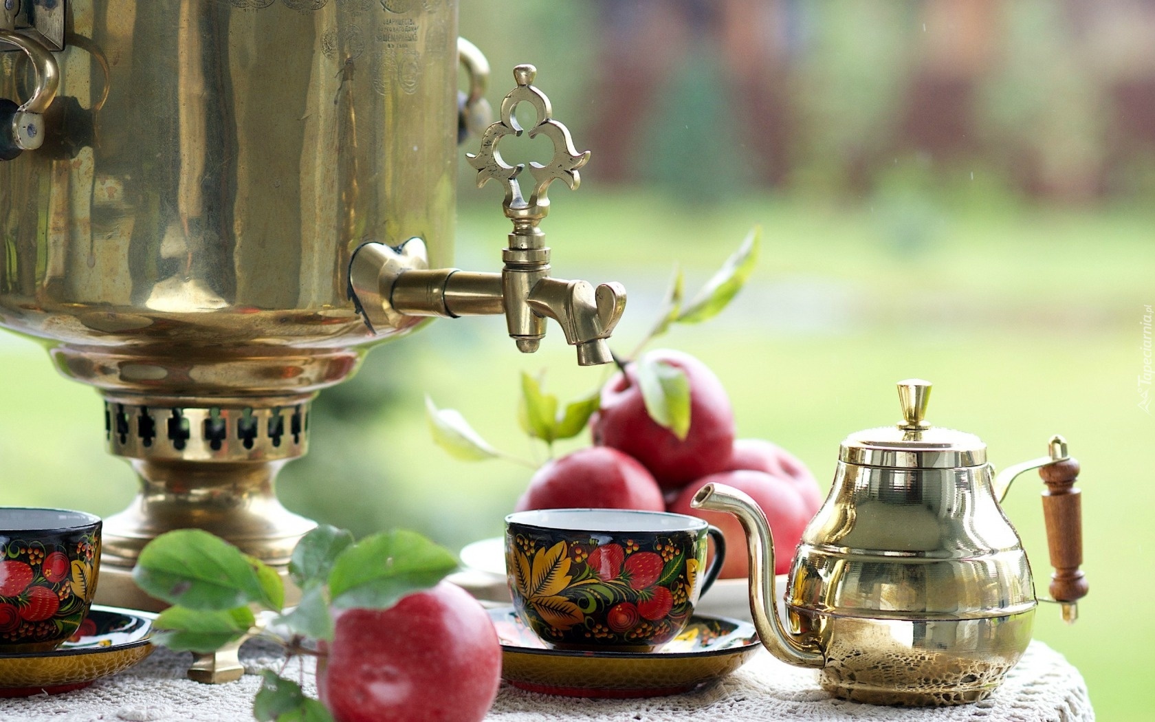 Edytor tapety: Samowar, Herbata, Jabłka, Filiżanki