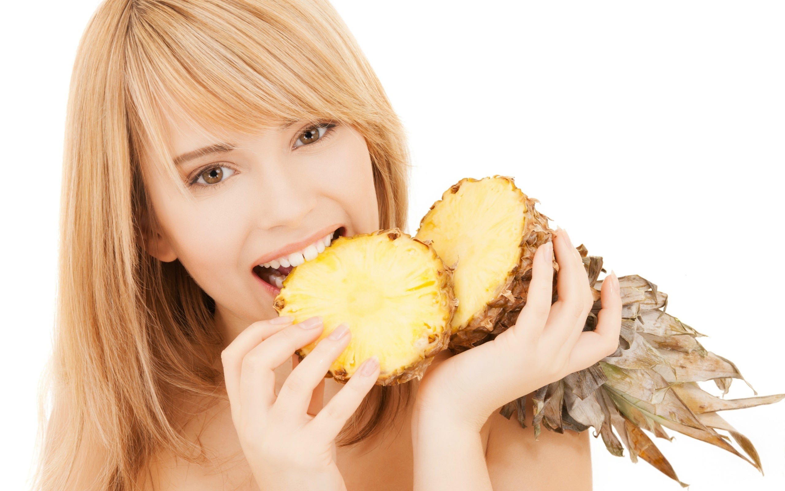 Edytor tapety: Uśmiechnięta, Dziewczyna, Ananas