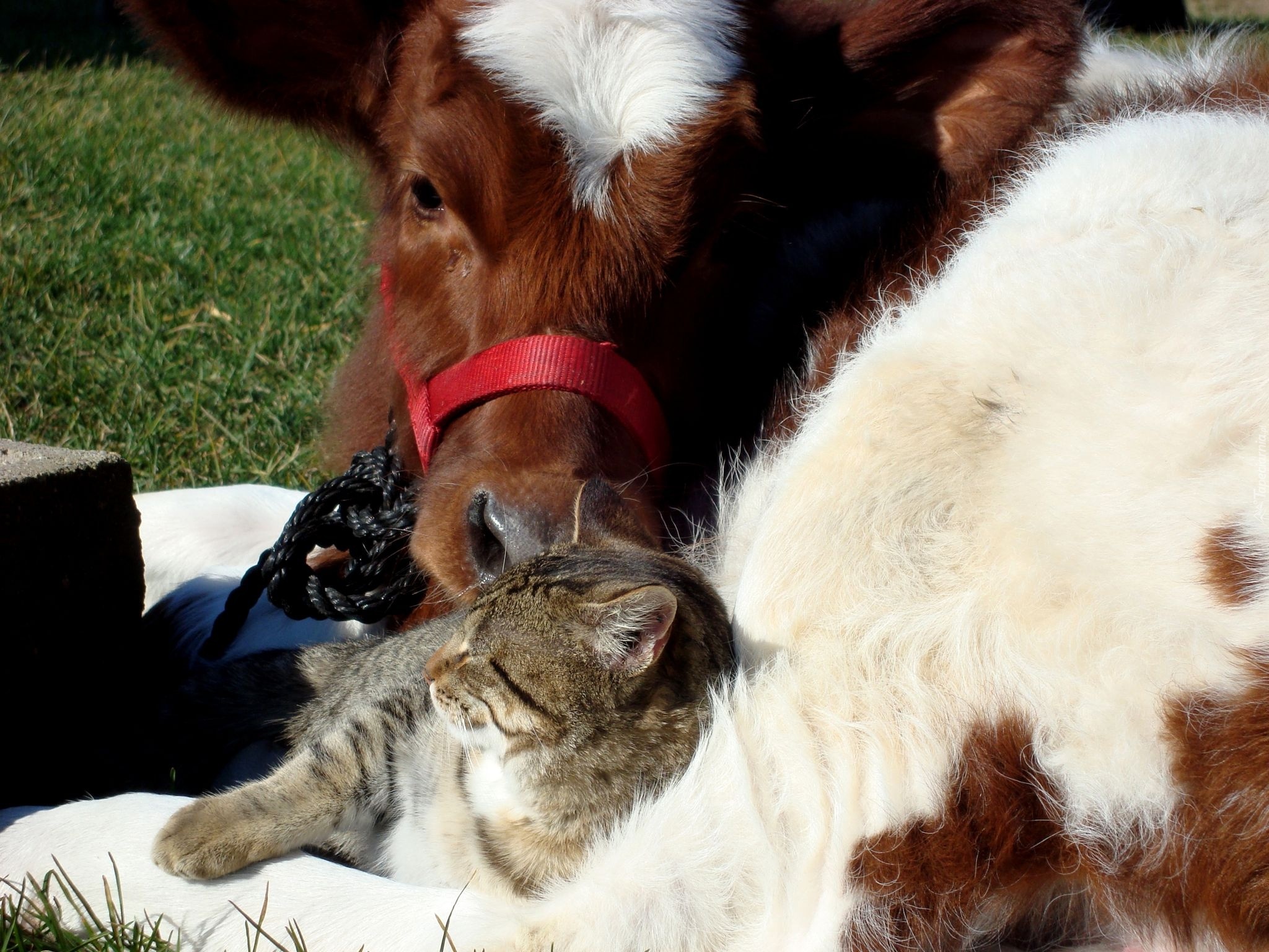 Edytor tapety: Kotek, Krowa, Przyjaciele
