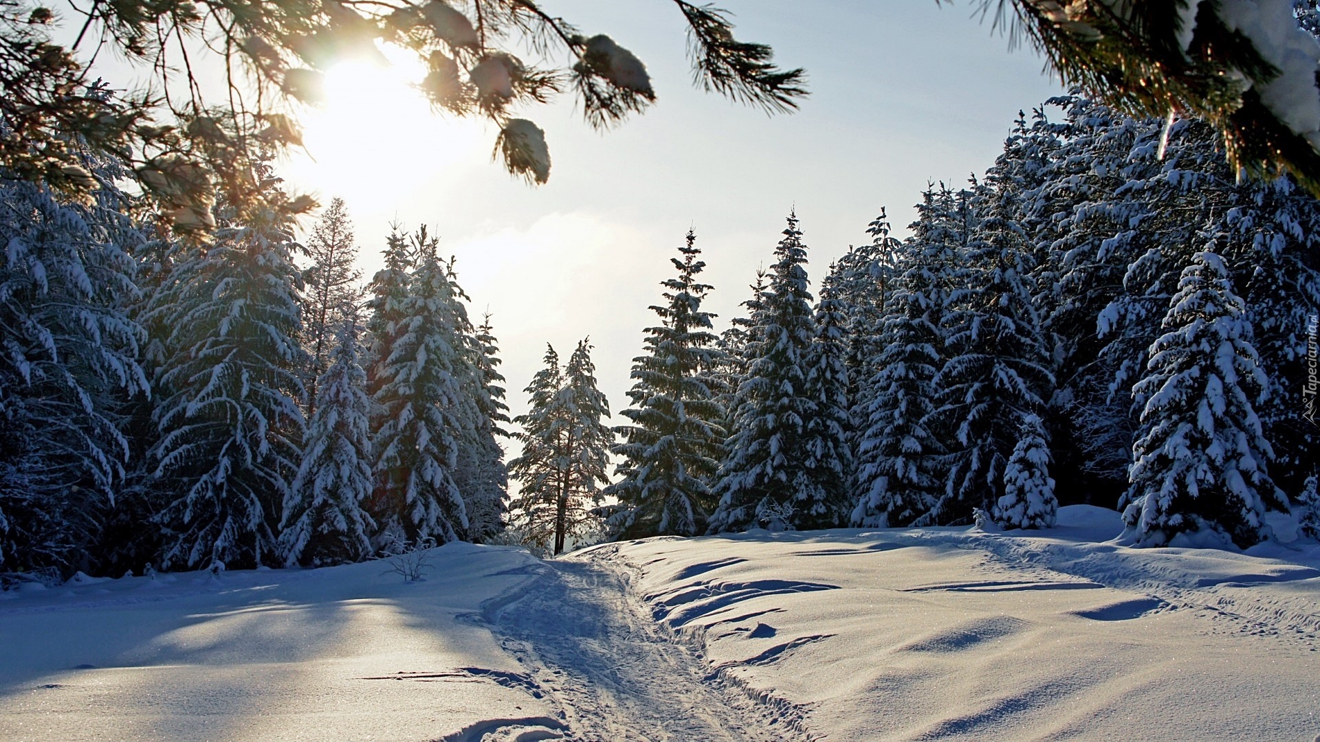 Edytor tapety: Zima, Doga, Las, Blask, Słońca