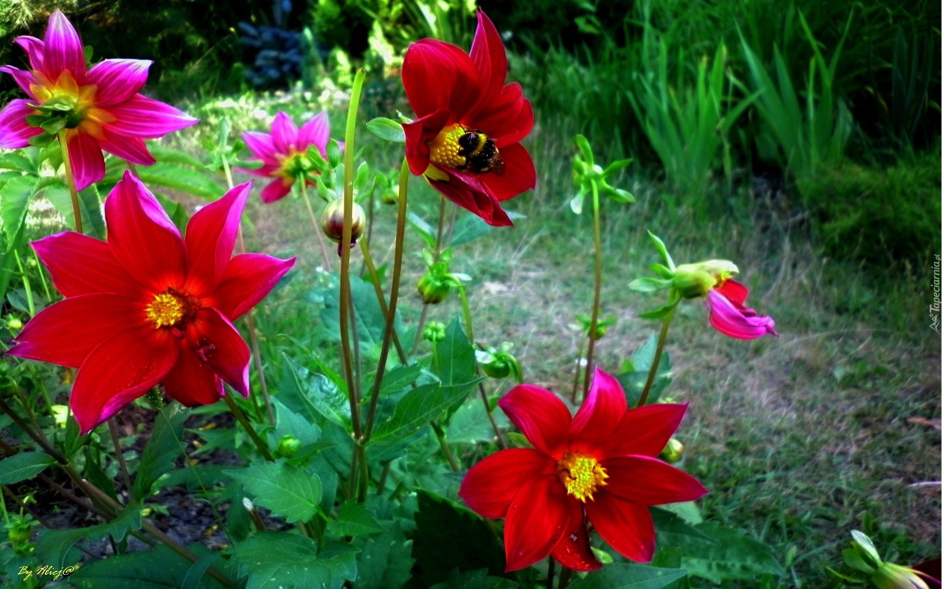 Edytor tapety: Czerwone, Dalie, Trzmiel