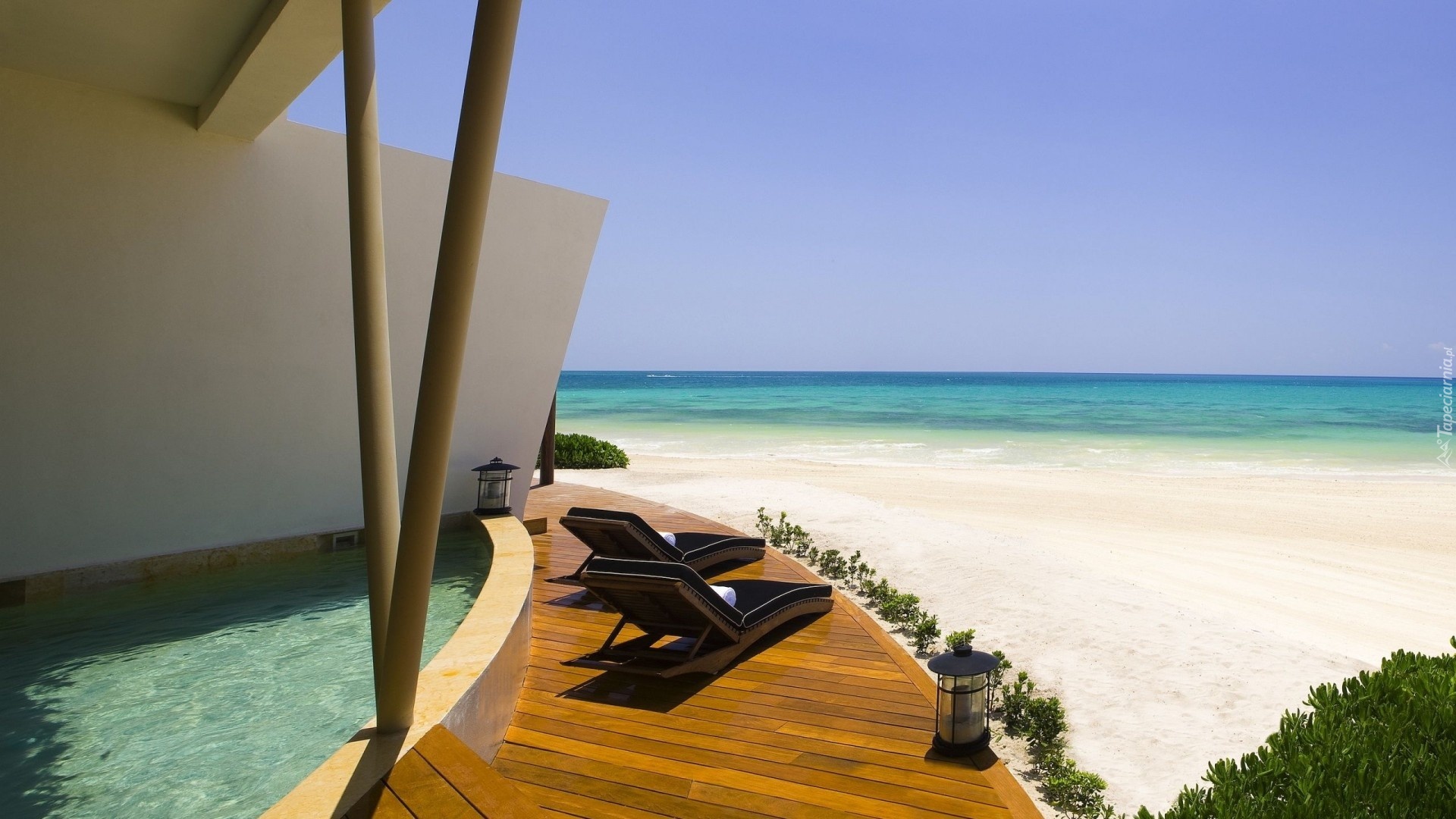 Edytor tapety: Morze, Plaża, Basen, Leżaki, Wakacje