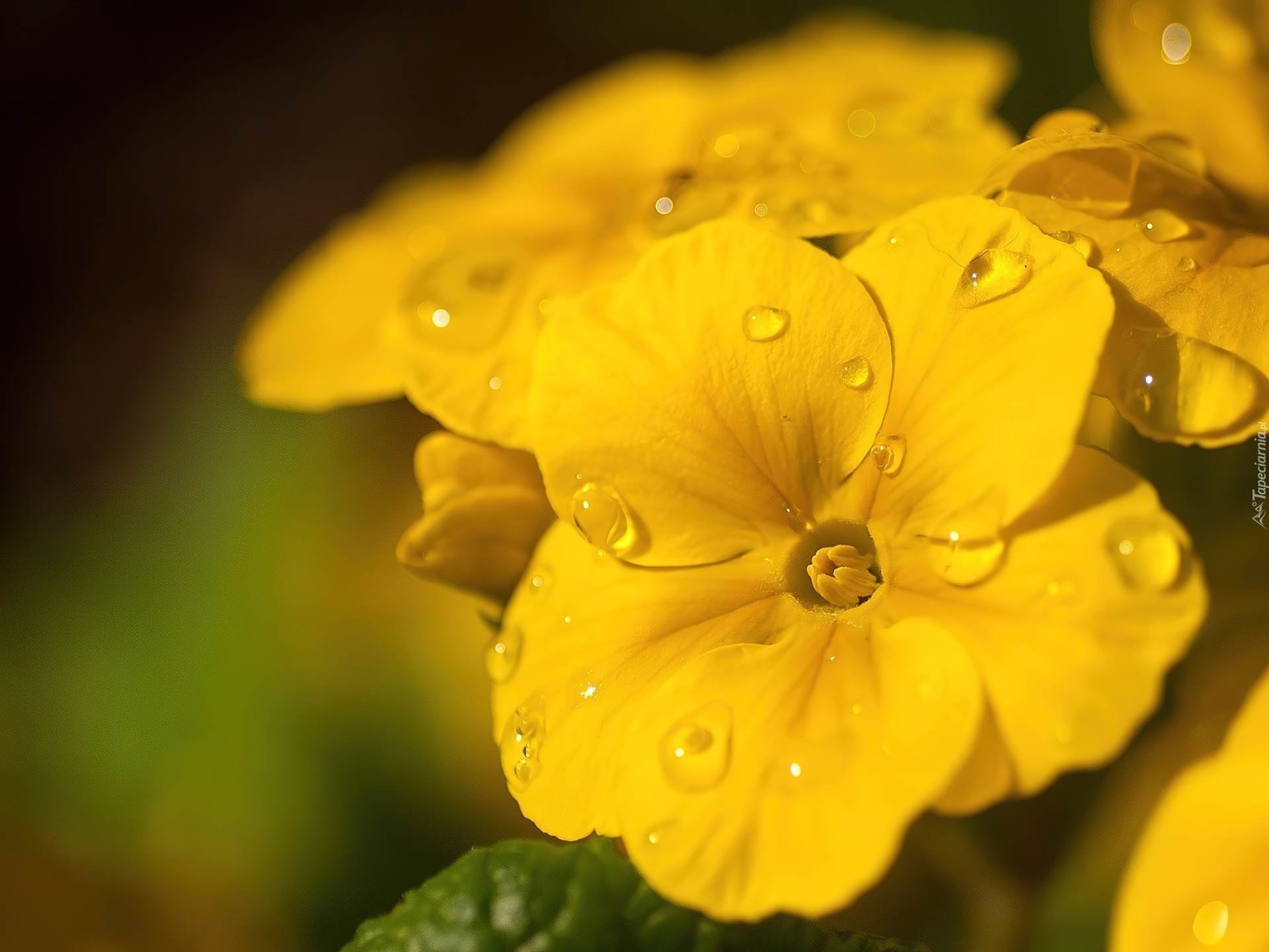 Edytor tapety: Żółty, Kwiat, Prymulka, Kropelki, Wody