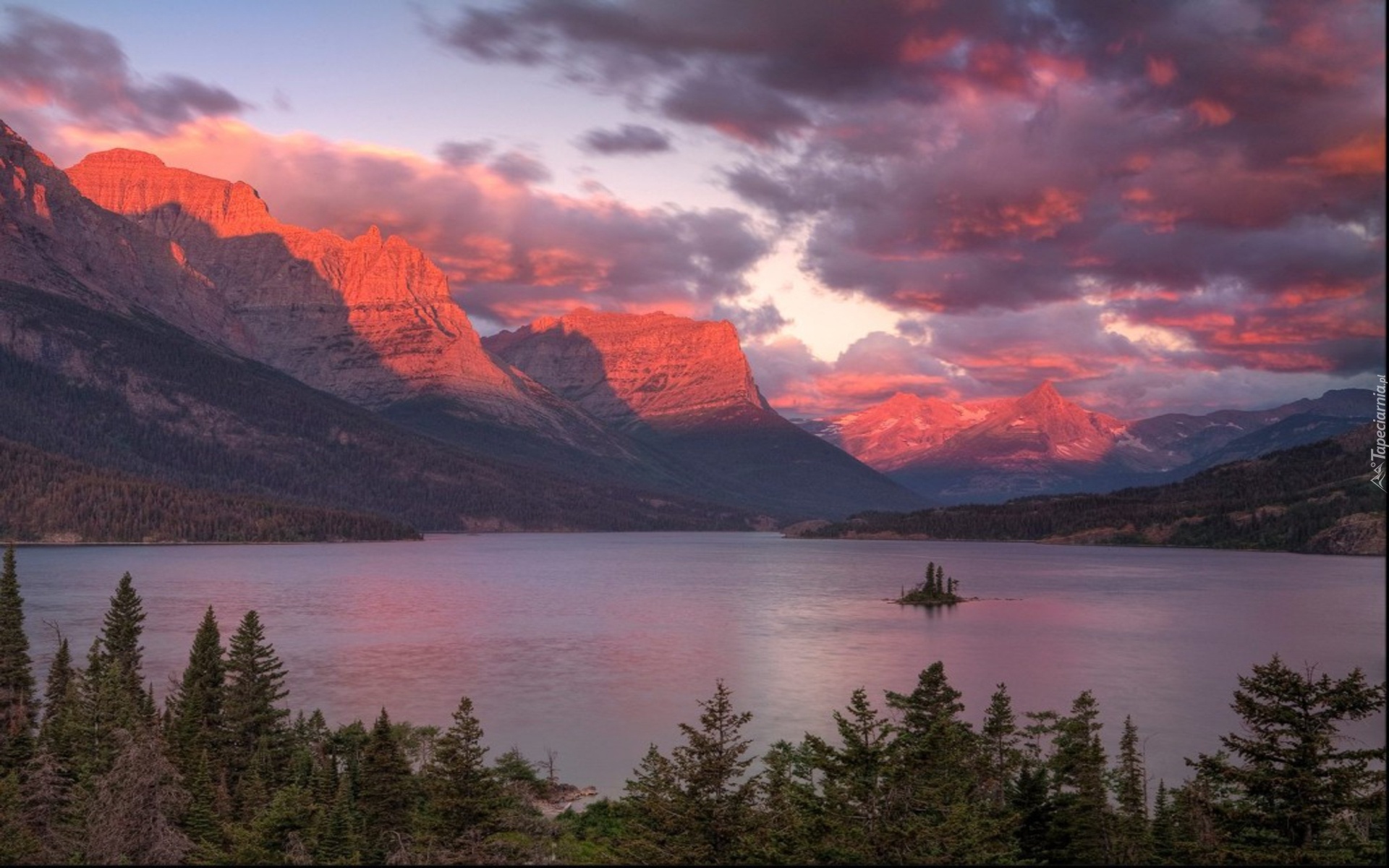 Edytor tapety: Zachód słońca, Góry, Jezioro, Chmury