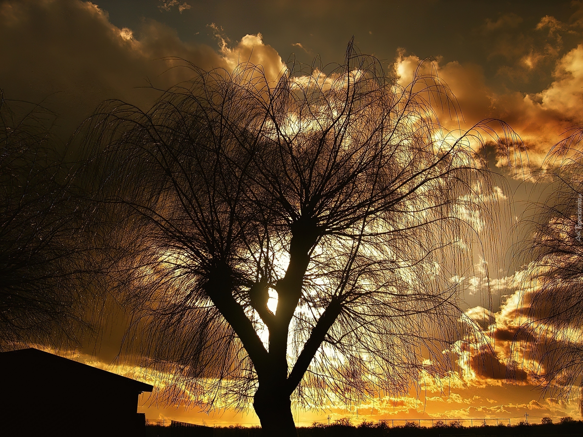 Edytor tapety: Zachód, Słońca, Drzewo
