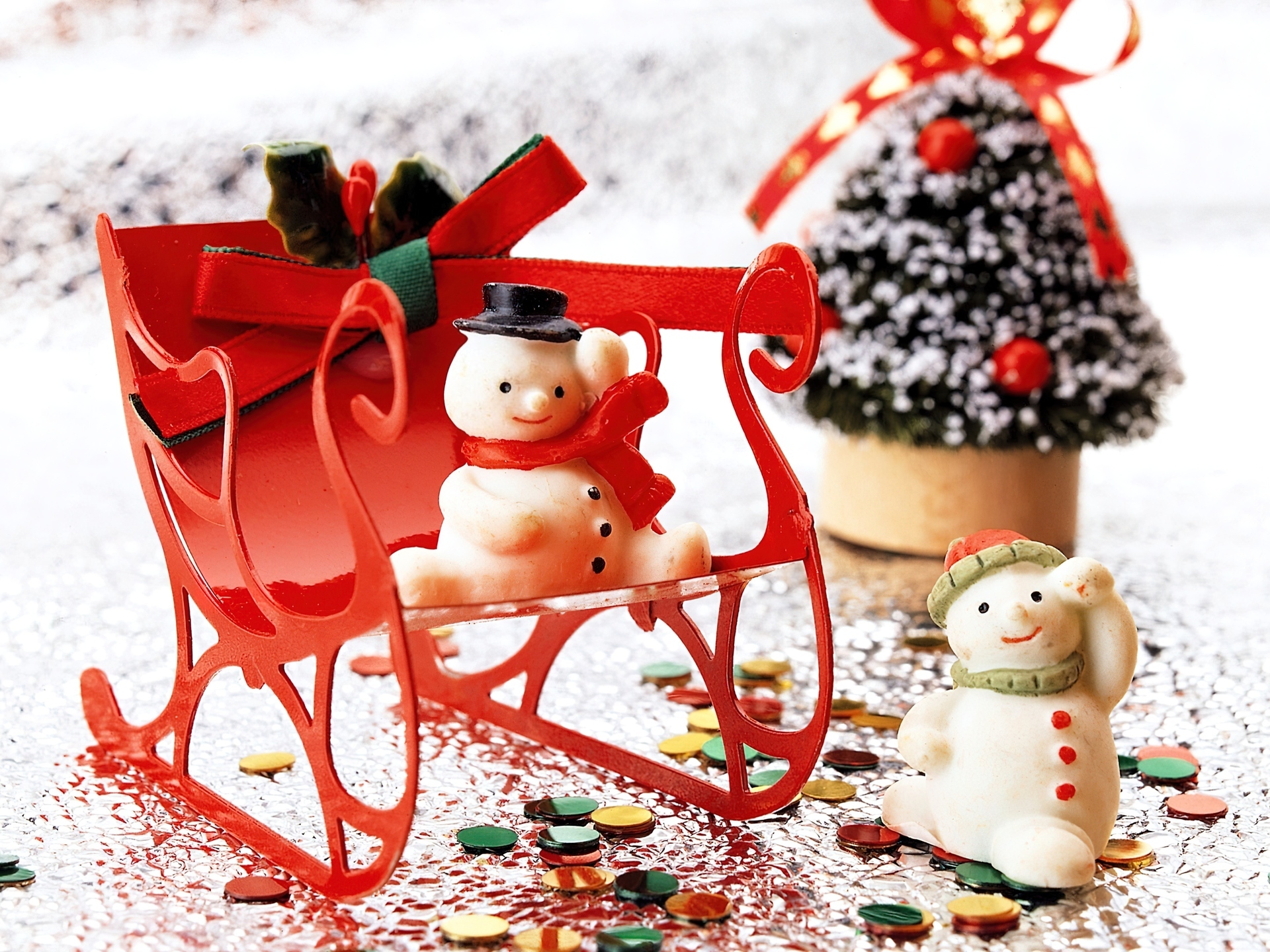 Edytor tapety: Sanie, Bałwanki, Piernikowa, Choinka