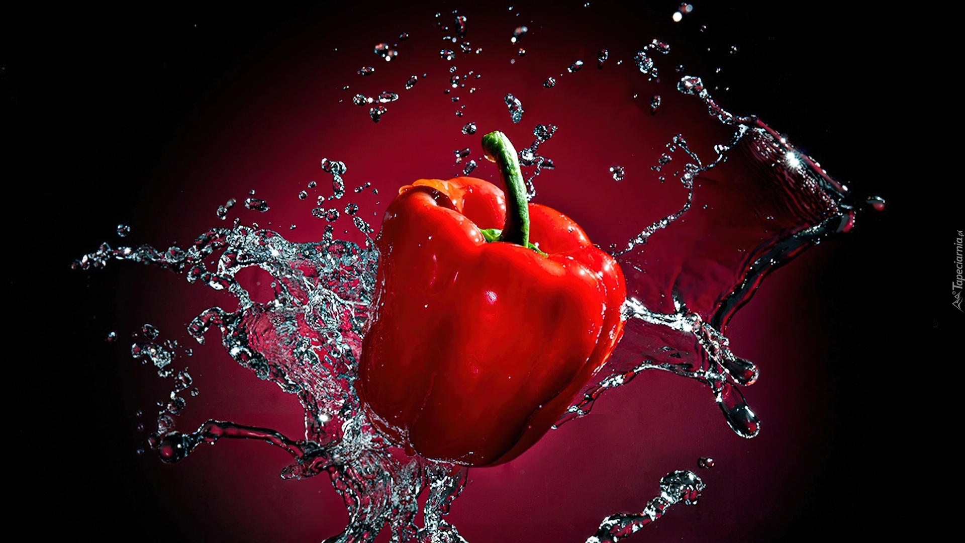 Edytor tapety: Czerwona, Papryka, Woda, Rozbryzg