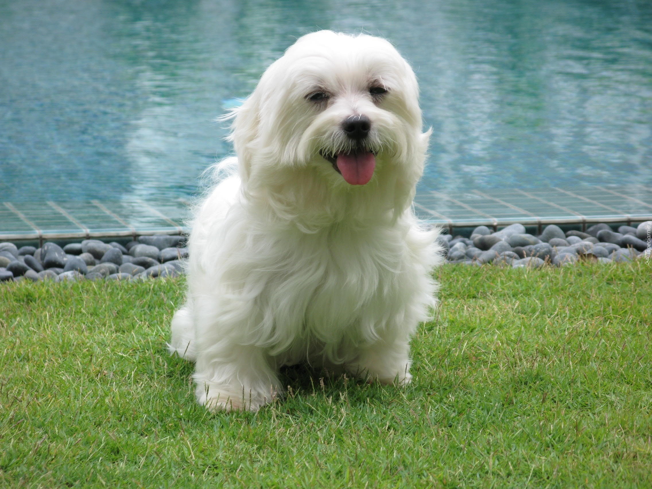 Edytor tapety: Biały, Piesek, Trawa, Basen