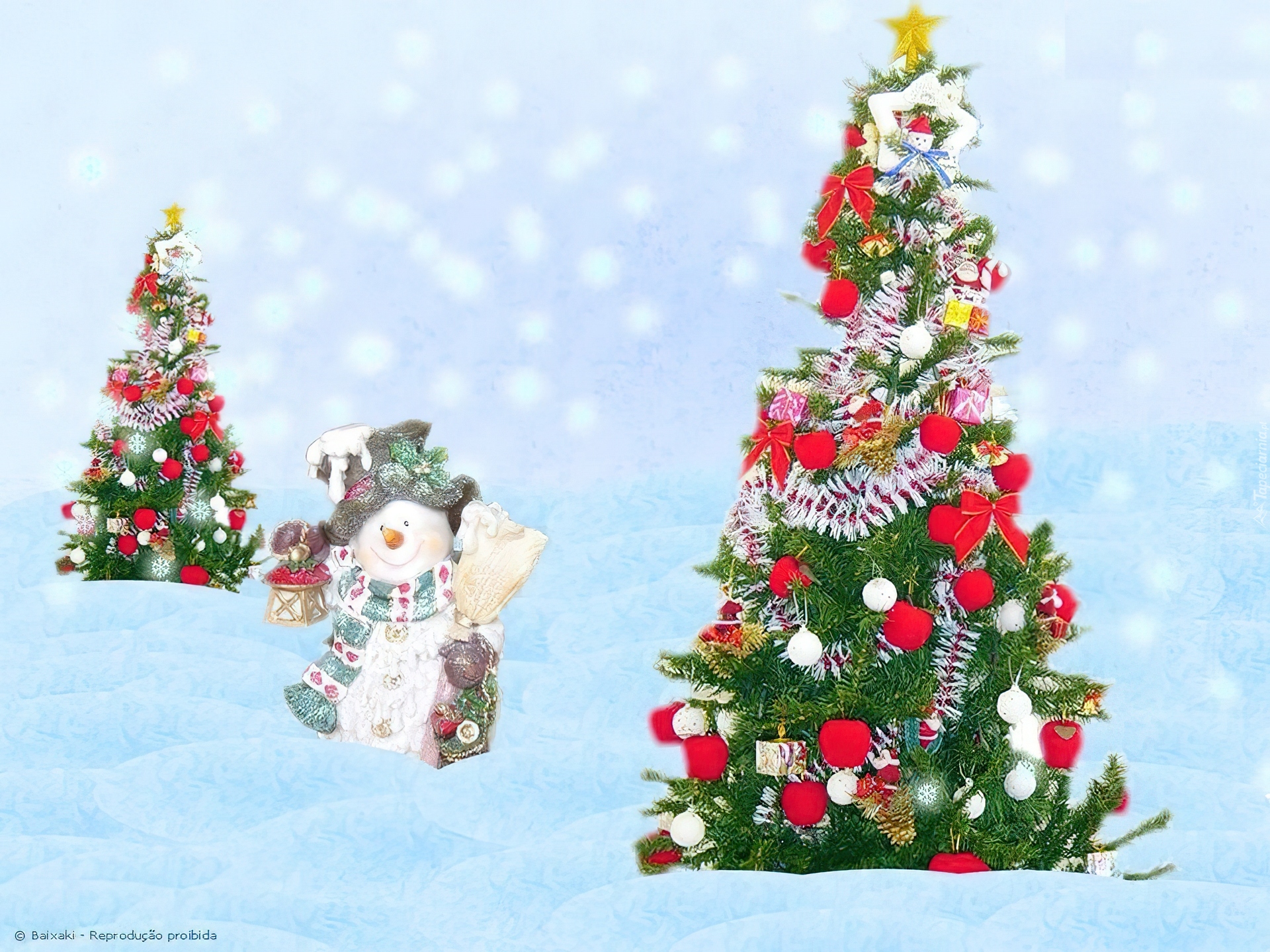 Edytor tapety: Boże Narodzenie, Choinka, Bałwanek