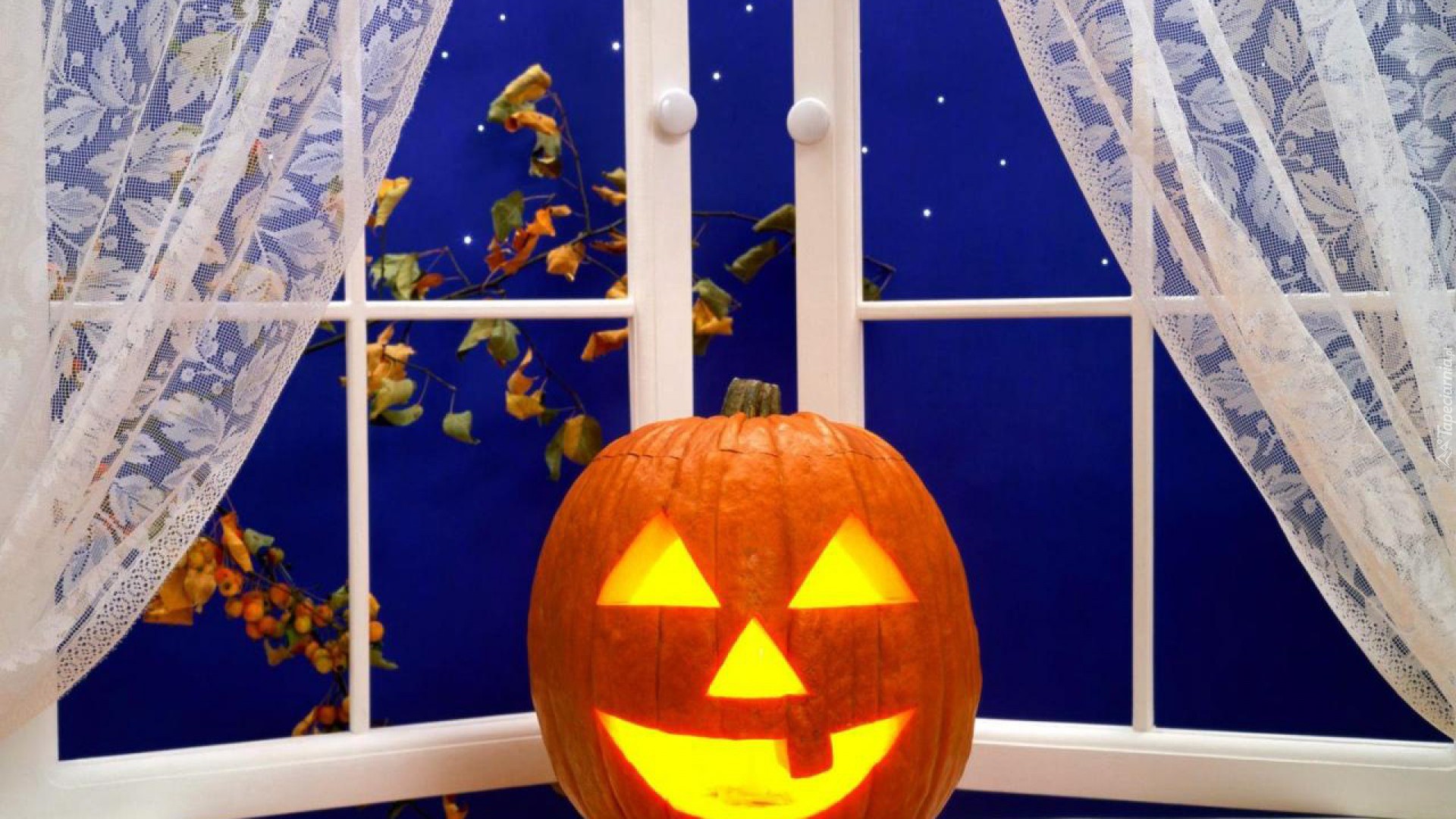 Edytor tapety: Halloween, Okno, Noc, Liście