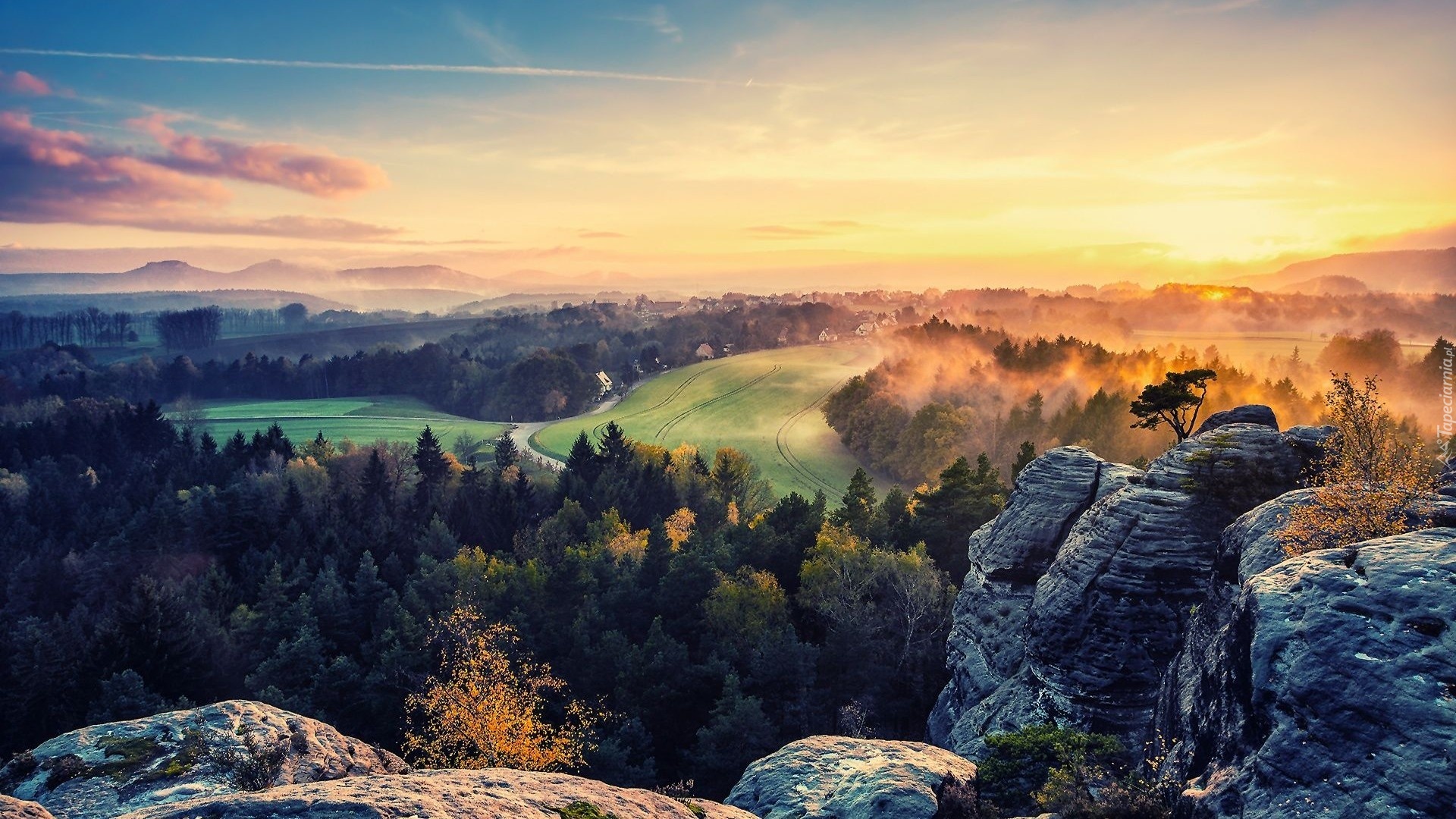 Edytor tapety: Skały, Lasy, Zachód Słońca