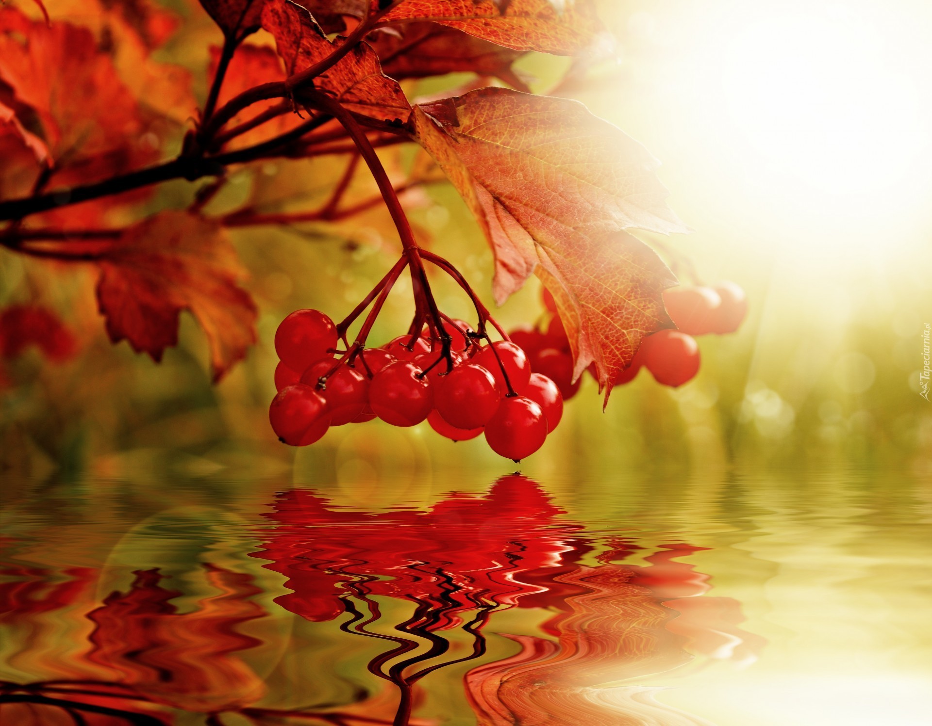 Edytor tapety: Gałązka, Jarzębiny, Woda, Odbicie