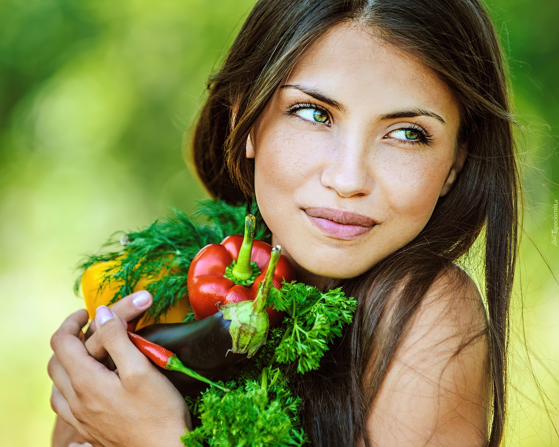Edytor tapety: Kobieta, Twarz, Papryka, Cukinia, Koperek